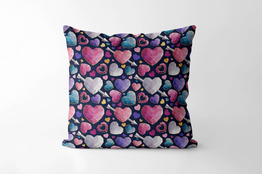 Geometric Valentines hearts - Square Cushion